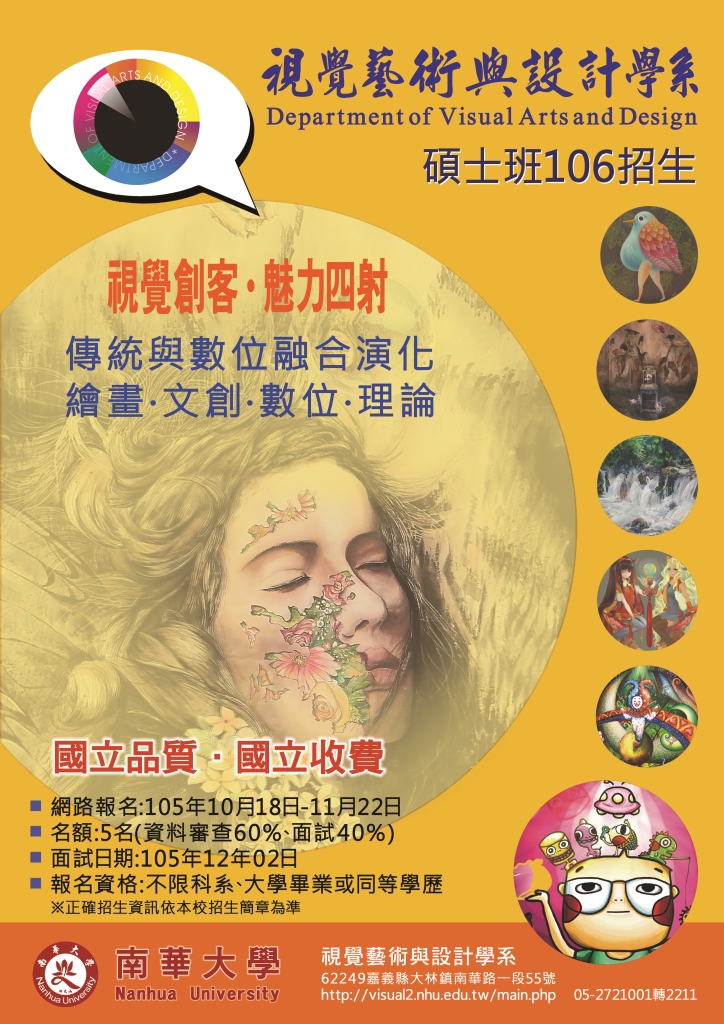 南華大學視覺藝術與設計學系106學年度碩士班甄試招生訊息