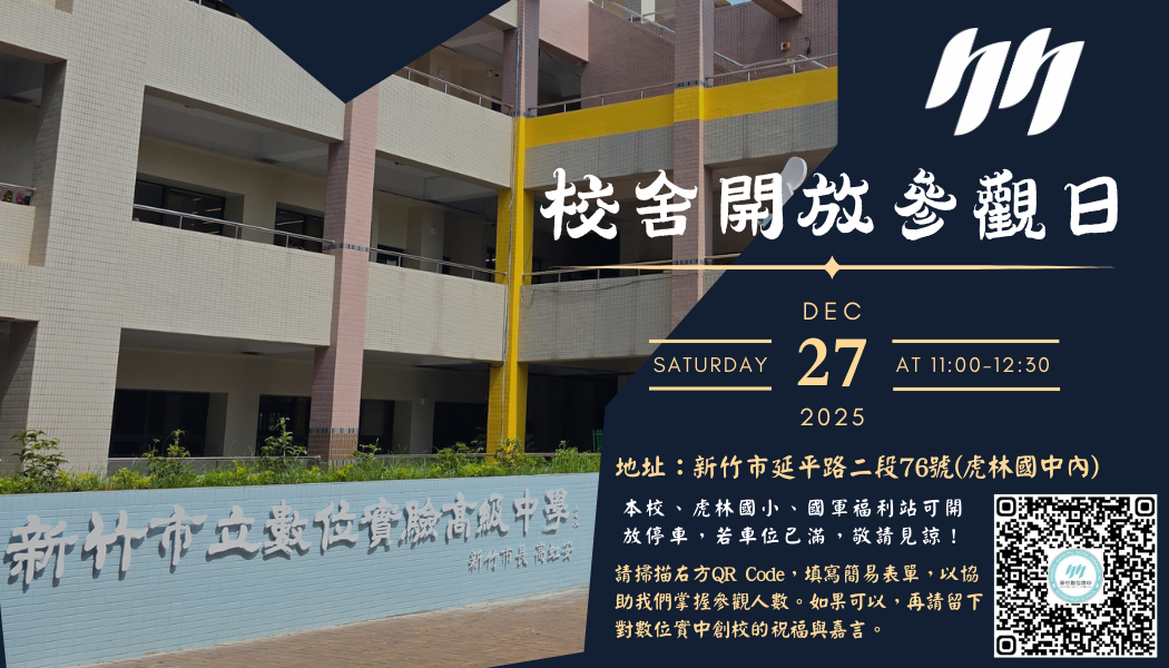 (三) 活動地點: 新竹市立數位實驗高中(新竹市香山區延平路二段76號(虎林國中內))。